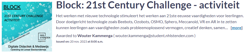 | 1.3.5 De leerkracht toont aan te reflecteren op het ‘eigen’ mediagebruik in relatie tot mediawijsheidcompetenties en de ‘21st Century Skills’. | Voor ik begon met het werk aan de 21st century skills ging ik bij mezelf na of ik bekend was met de techniek en deze al eens gebruikt had. Dit was het geval sinds ik van mezelf aardig technisch ben. |