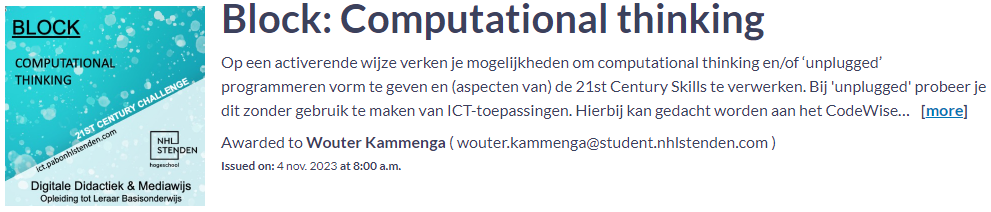 Ik heb een les gegeven waarbij ik gebruik heb gemaakt van fysieke bee-bots. Bij deze les heb ik 3 blocks weten te gebruiken, het gaat om de volgende blocks. Computational thinking, S.T.E.A.M en 21st century skills. In de volgende alinea’s zal ik uitleg geven hoe ik deze heb toegepast op mijn stageschool.
