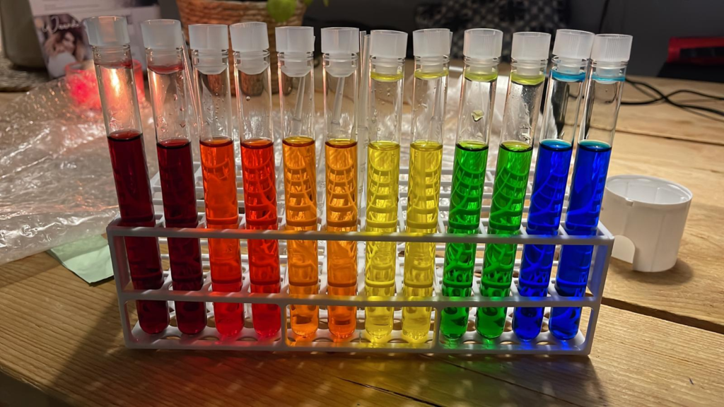 Na de uitleg gingen de studenten met een proefje zelf onderzoeken hoe het samenkomen van die druppels nou eigenlijk werkte.