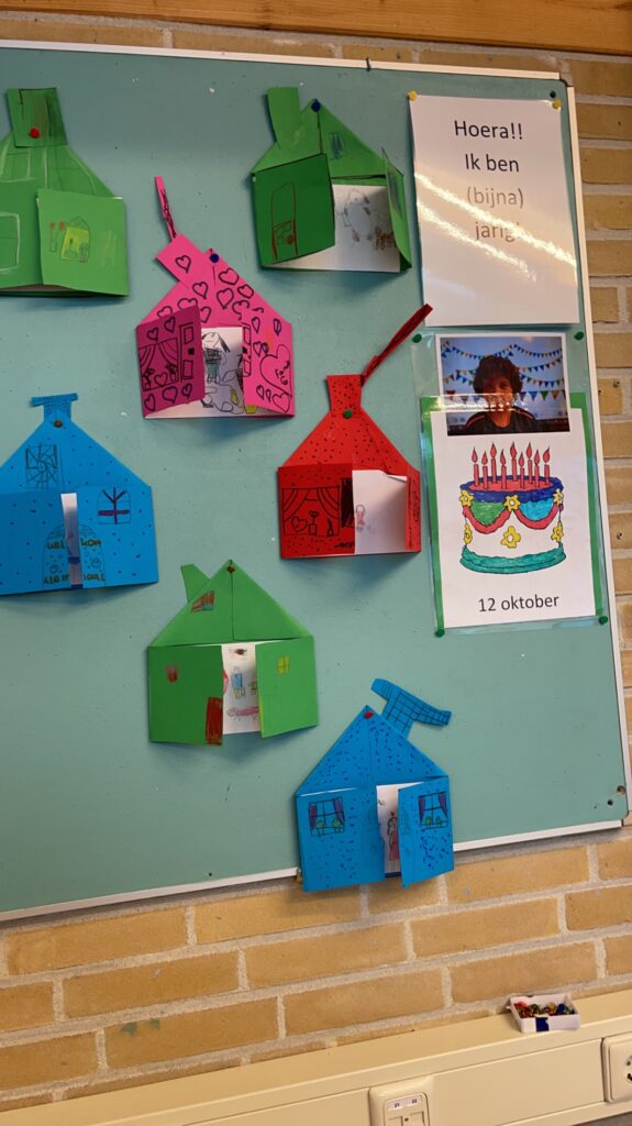 Tijdens de Kinderboekenweek heb ik mijn eerste BEVO les gegeven. Ik heb huisjes met de leerlingen gemaakt die hun huis thuis moesten reflecteren.